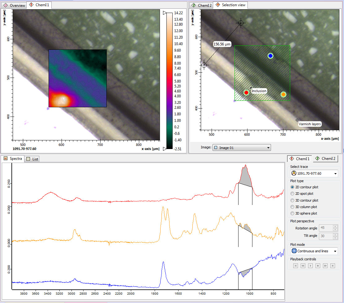OPUS/3D ist ein modernes, nutzerfreundliches Softwarepaket für die spektrale Bildgebung und ermöglicht die komfortable Bearbeitung, Auswertung und Visualisierung von spektralen 3D Daten. Für visuelle und spektrale Daten aus der mikro-spektroskopischen Analyse z.B. mit den Bruker Mikroskopen LUMOS II, HYPERION, SENTERRA II und RamanScope III, bietet die OPUS/3D Ansicht zur Chemischen Bildgebung leistungsfähige Werkzeuge und Funktionen.