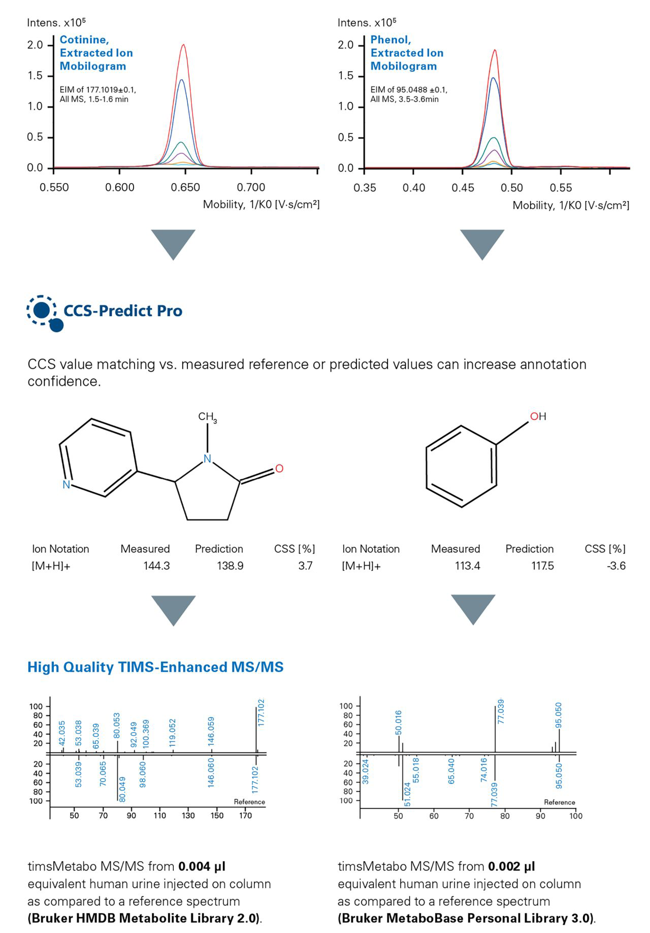 Unknown metabolic features can be annotated using tools for matching experimental and predicted CCS values and MS/MS spectra.