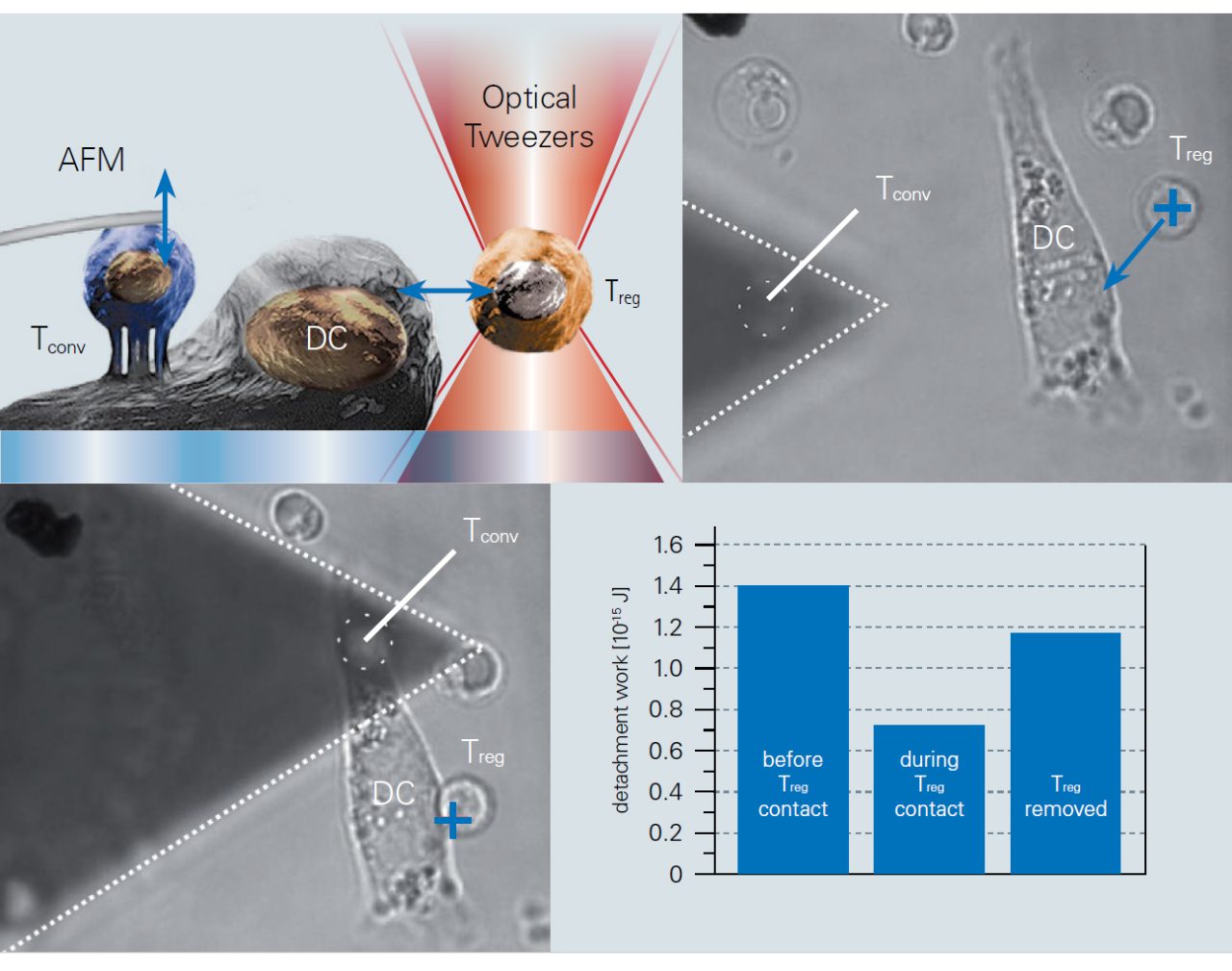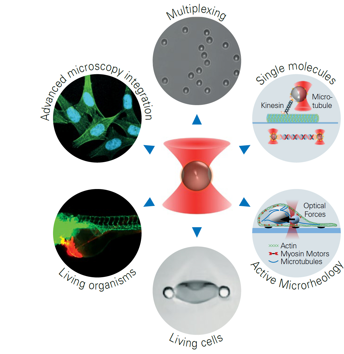 As well as applying and measuring forces, NanoTracker 2 can be used to manipulate cells directly with optical traps: