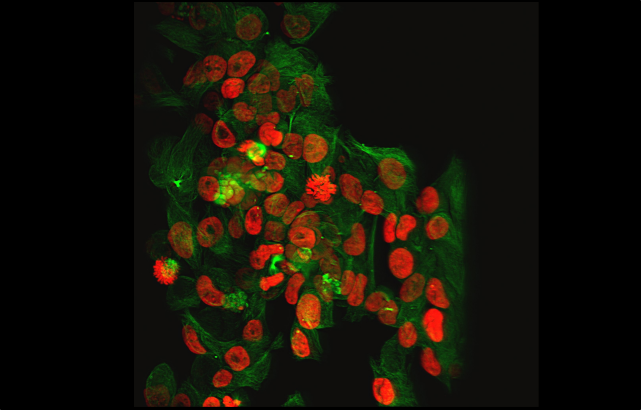 HeLa cells expressing GFP and mCherry. Imaged on the InVi SPIM.