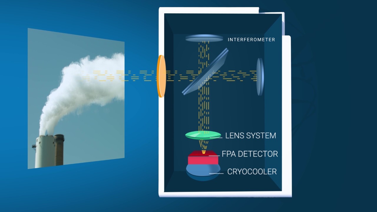 El HI 90 es un espectrómetro FT-IR combinado con un detector de matriz de plano focal (FPA) criorefrigerado. Al analizar el espectro de infrarrojo medio (MIR) medido de cada píxel del detector FPA, se proporciona una identificación y visualización en tiempo real de las nubes de gas invisibles.