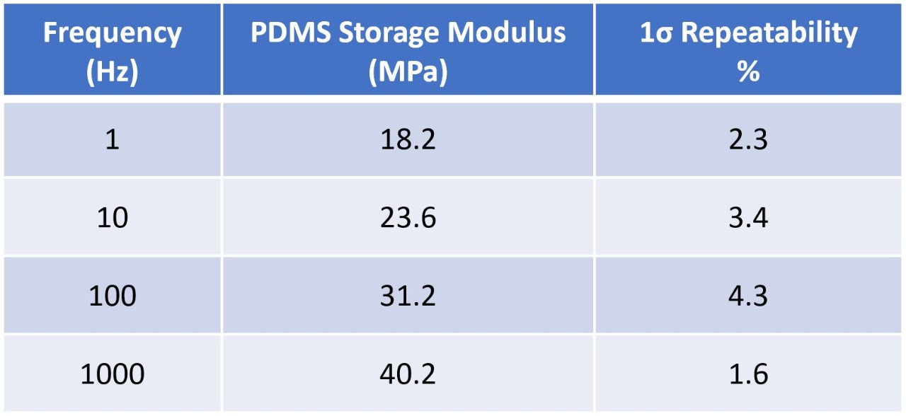 AFM-nDMA uses several Bruker proprietary technologies including dual channel demodulation, phase drift correction, and reference frequency normalization, to provide measurements of storage modulus, loss modulus, and loss tangent, in the rheological frequency range of 0.1Hz to 20kHz – directly matching the range of bulk DMA and indenter-based measurements.