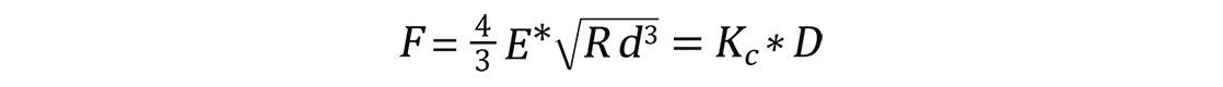 As described in Equation 1, the well-known Hertzian-based DMT model relates F (the load exerted by a spherical probe on a surface) to the reduced modulus (E*), probe radius (R), and amount of deformation (d=Z-D) in the sample through the following relationship: