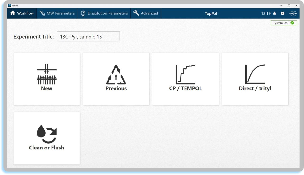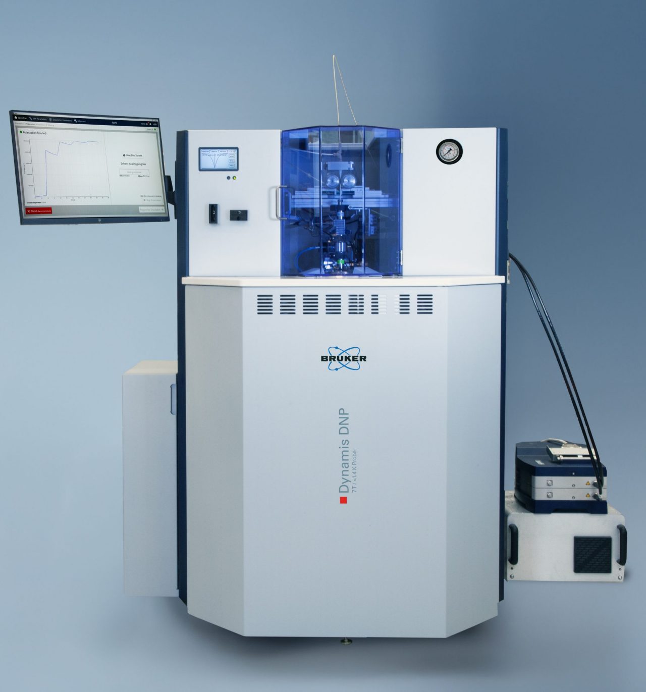 In NMR spectroscopy, dissolution DNP with the Dynamis enables researchers to detect low-abundance nuclei, dilute species, and transient chemical intermediates for startling insights on previously intractable problems. Dynamis DNP’s rapid polarization and simple automated workflows allow analysis of complex biological or chemical samples in ultrasensitive solution NMR spectra. This makes it a powerful tool for structural biology, metabolomics, and dynamic studies of protein-ligand interactions. Driven by the TopPol interface, full d-DNP workflows are carried out with ease and precision, while advanced users benefit from the full RF control and customization available with TopSpin.