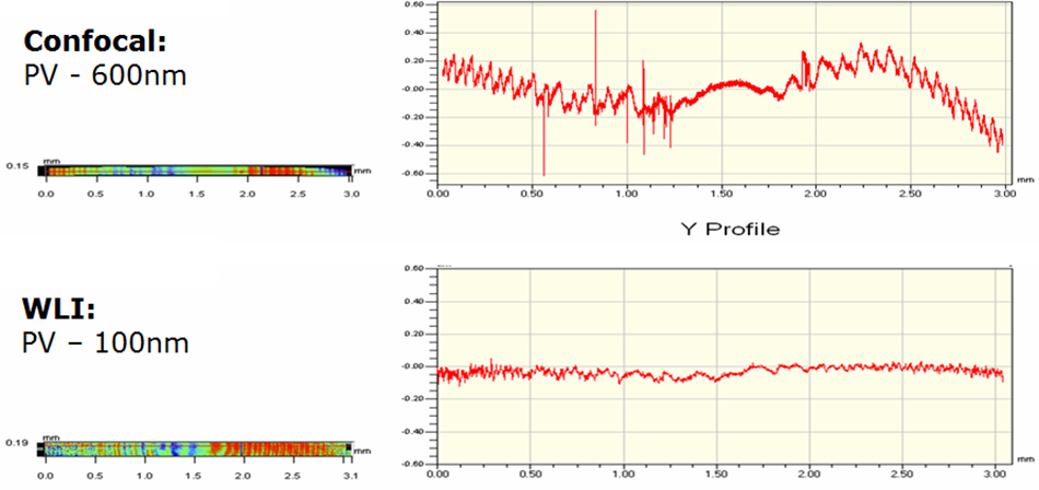 It is true that in order to obtain the absolute best data for very smooth or very high lateral resolution requirements, it is necessary to remove sample tilt relative to the optical head. This is also true for confocal techniques.