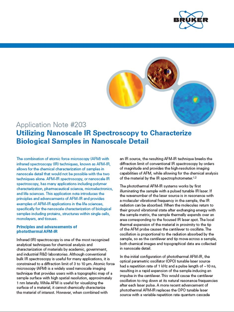 Nanoscale Infrared Spectrometers; Nanoscale IR Spectrometry; nanoIR; AFM-IR; AN203; Bruker; Application Note; Biological Samples; Life Sciences