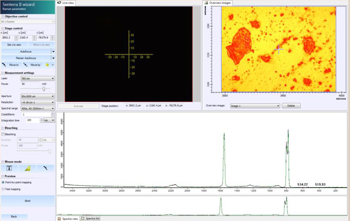 Generating sharp visual images of uneven samples with Bruker IR and Raman microscopes. Improving the sensitivity of Raman mappings by automatic Raman focus adjustment following the sample’s surface topography.