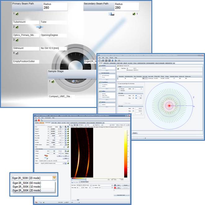 • 1D mode for ultra-fast scans on powders, measured either in reflection (Bragg-Brentano) or in transmission geometry, as well as for reciprocal space mapping of epitaxial thin films