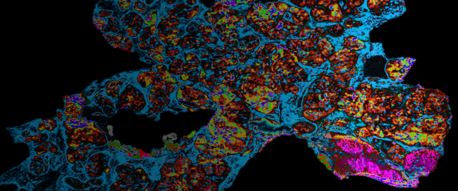 By using IR lasers, tissue imaging has become faster than ever. With acquisition rates of 9000 pixels per second at a pixel resolution of 5 µm, Bruker's ILIM allows the imaging of several square centimeters of tissue within minutes. By implementing our patented coherence reduction technique, it is finally possible to capture theses images without artifacts – something no other IR instrument can achieve. Adding to this, our unique machine learning-driven algorithms generate spatial segmentation maps based on chemical fingerprints without the need for prior molecular or histological input. The result is an unprecedented analytical tool for tissues that opens new possibilities and applications, such as IR Guided MALDI Imaging.