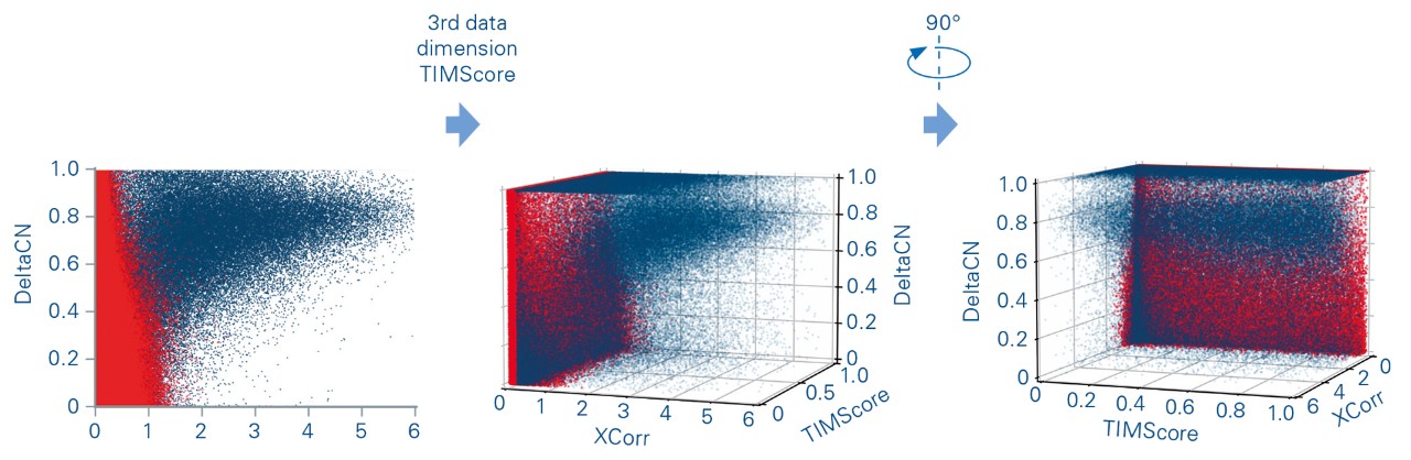The Bruker ProteoScape™ search algorithm is run as normal, combined with comparison of the predicted and measured CCS values and calculating a TIMScore™ for the top 5 peptide candidates for each spectra.