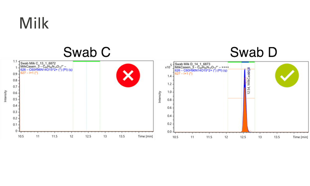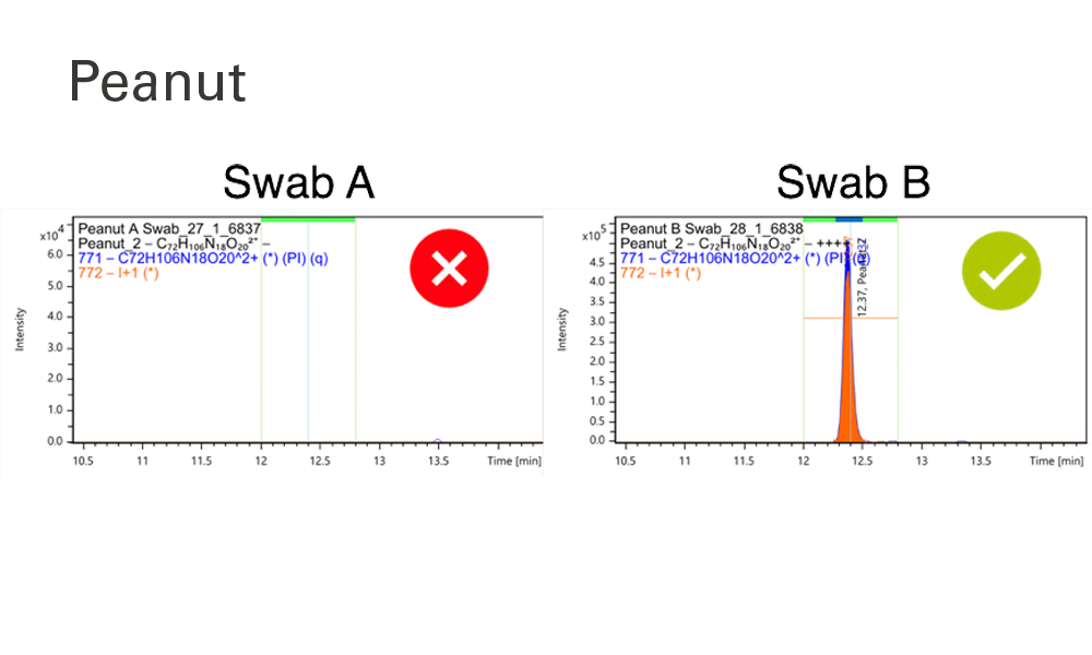 High resolution mass spectrometry enables the simultaneous analysis of regulated allergens in a single, multiplexed run, making it suitable for different food matrices or hygiene control swab samples.