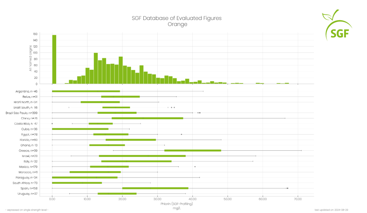 The database that SGF International uses to reference juice samples holds over 49,000 juice samples from all over the world and includes 27 fruit type models and 43 country of origin models. Verifications of juice from concentrate and not from concentrate, and detection of juice blends and atypical profiles of samples are stored in the database for confirmation of samples with statistical evaluation using their NMR profiles.
