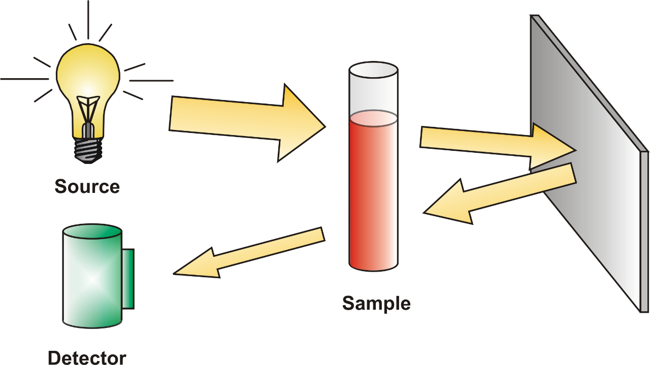 透過反射測定は、透過測定の延長線上にあります。試料の後ろに反射板を設置すると、試料を透過した光が試料を通って拡散反射プローブや積分球に反射して戻ってきます。このようにして、透過と反射を組み合わせて測定します。透過反射測定は、エマルション、ゲル、濁った液体に有効です。透過反射測定プローブも利用可能で、牛乳のような濁った液体や、インラインでの発酵プロセスなどの分析に使用できます。