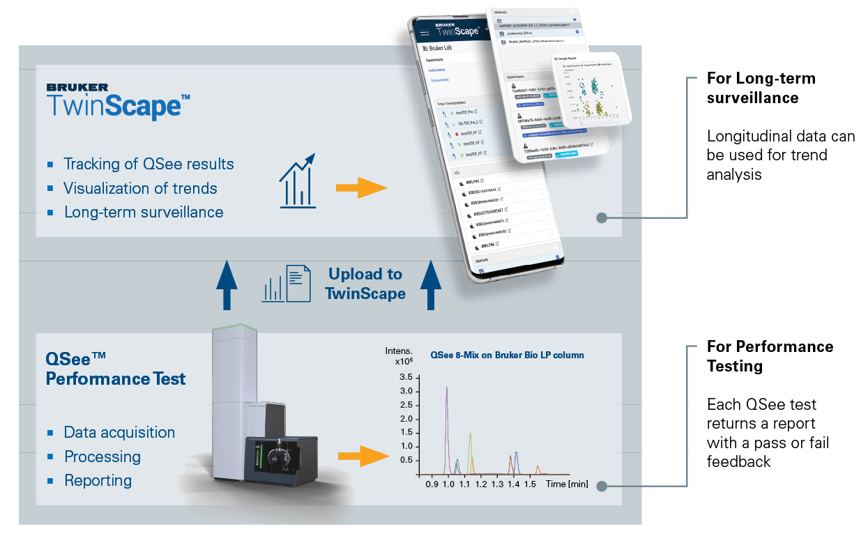 When pushing the boundaries of metabolomics and lipidomics-based discovery research, the importance of data quality is paramount. The QSee™ Performance Test Solution offers an easy-to-use Quality Control workflow. Dedicated columns for metabolomics and lipidomics applications, and compound mixtures, together with Standard Operating Procedures simplify the evaluation of LC-TIMS-MS data quality. Automatic alignment with TwinScape™ uncovers trends in system performance over time. Stay on top of your performance!