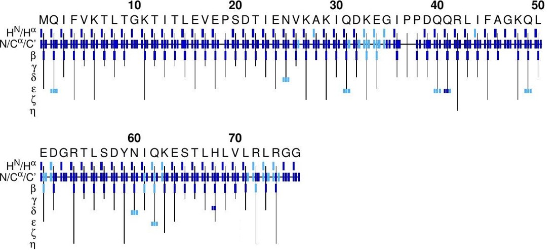 Easy access to assignments via the NMRtist platform benefits a wide range of applications, with the determination of backbone dynamics being just one example. A minimal set of experiments was utilized to obtain backbone amide assignments. By combining rapid pulsing and sparse sampling techniques, the total measurement time for a small protein was reduced to just under 2 hours.