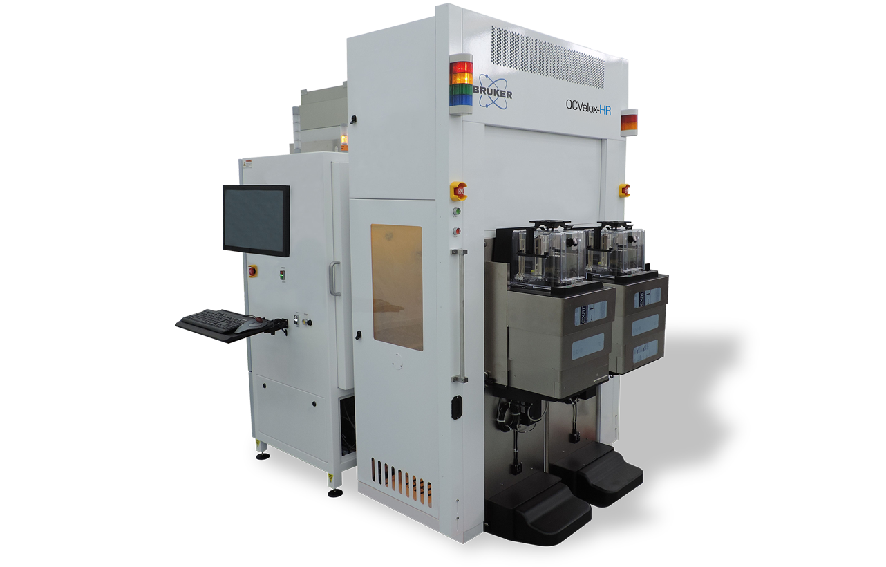 QCVelox-HR is the highest productivity high-resolution X-ray diffraction (HRXRD) and X-ray reflectivity (XRR) metrology system for complex epilayer structures. HRXRD measures the crystal quality, strain, relaxation, and thickness of the epilayers, while XRR determines their thickness, density, and surface roughness. QCVelox-HR features full automation and factory integration software for production line metrology. Once data is collected, Bruker’s powerful analysis software accurately and reliably gives epilayer process parameters, with automatic reporting and immediate feedback to control and monitor production lines.