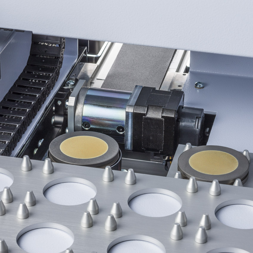 Manuseio de amostra WDXRF em uma unidade EDXRF de bancada - o Autochanger S2 PUMA Série 2 XY é equipado com uma bandeja de amostra de 20 posições e coletor de amostra com detecção de amostra de líquido.