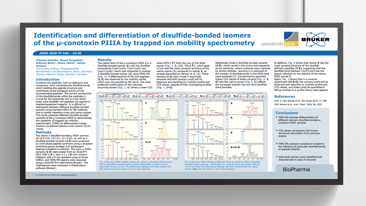 The software simplifies routine biopharmaceutical analysis by offering dedicated LC-MS workflows from automated measurements to report generation. Such workflows are increasingly important in biopharmaceutical development, e.g., to verify protein sequences and to quantify product and process related heterogeneities such as modification profiles. These Multi-Attribute Methods (MAM) are implemented in BioPharma Compass® to reduce report turnaround times and increase throughput using high isotopic fidelity ESI-QTOF mass spectrometry.
