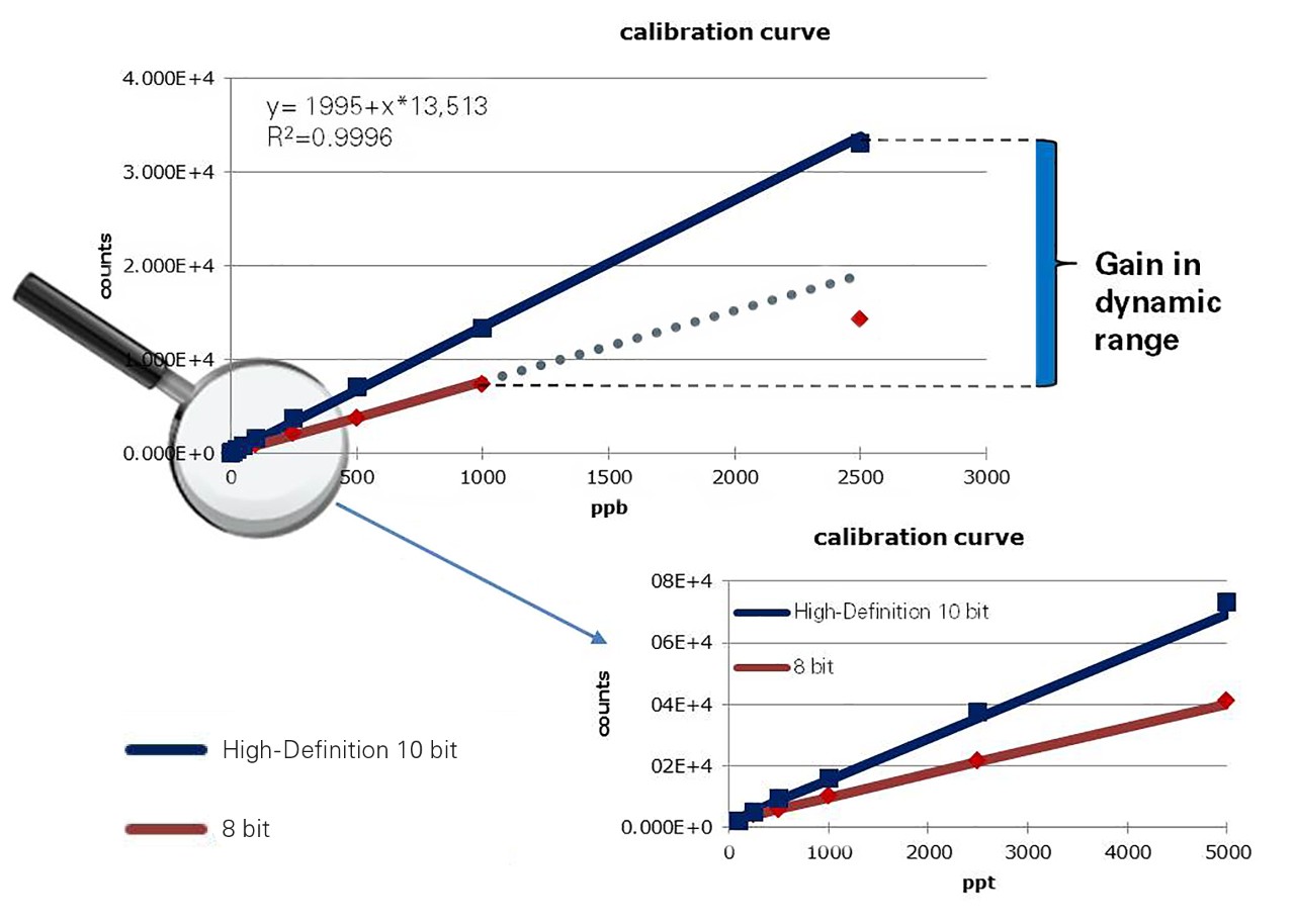 • Definitive trace analysis from complex, high-background matrices, by increased dynamic range