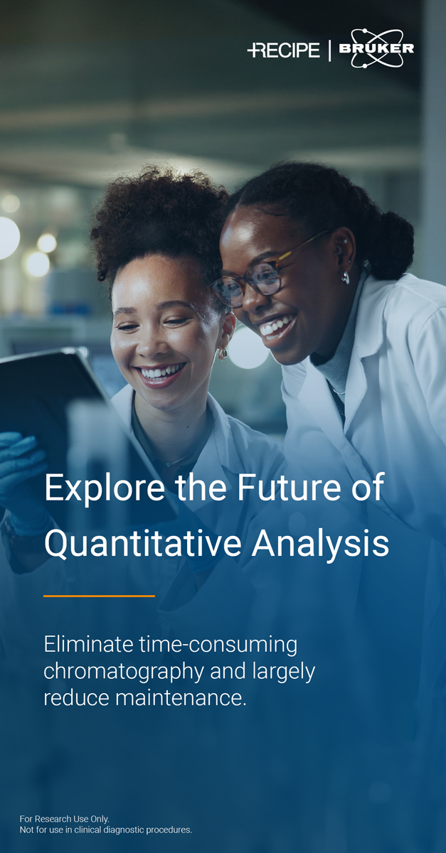 Bruker as a leading provider of mass spectrometry and RECIPE as a world-leader in clincial chemistry consumables have combined the reliability of kits for clinical research application with the analytical specificity and sensitivity of the EVOQ® DART-TQ+ triple quadrupole mass spectrometer.