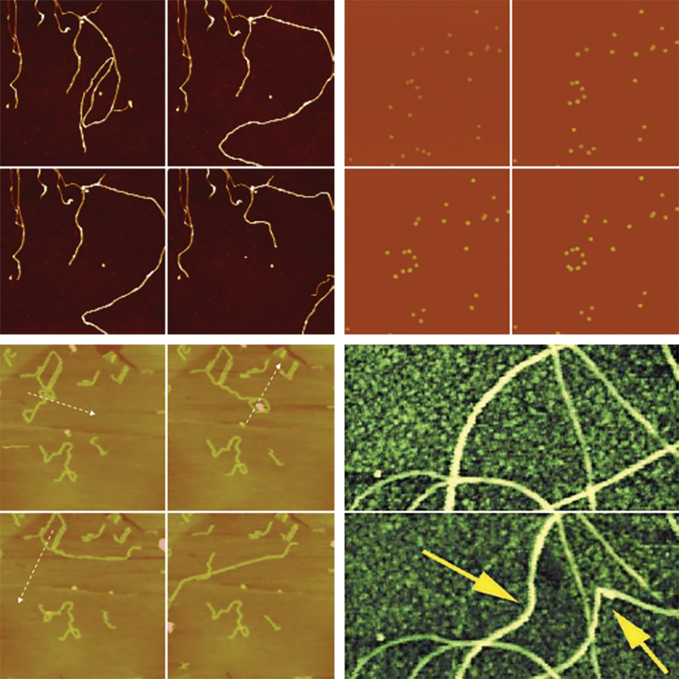 During nanomanipulation operation, the tip follows a user‑defined path created by a series of user‑selected positions, vector files, or scripts. While following the path, the operating mode (contact mode or TappingMode) and related tip‑sample force interactions are precisely controlled to manipulate local sample features. Additional control of voltages can also be applied. Manipulation is typically followed by an imaging step (using the same probe) of the modified area.