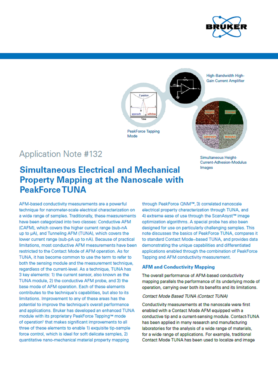 KEYWORDS: Atomic Force Microscopy; Materials AFM; AN132; Application Note; Bruker; Conductive AFM; TUNA; PeakForce Tapping