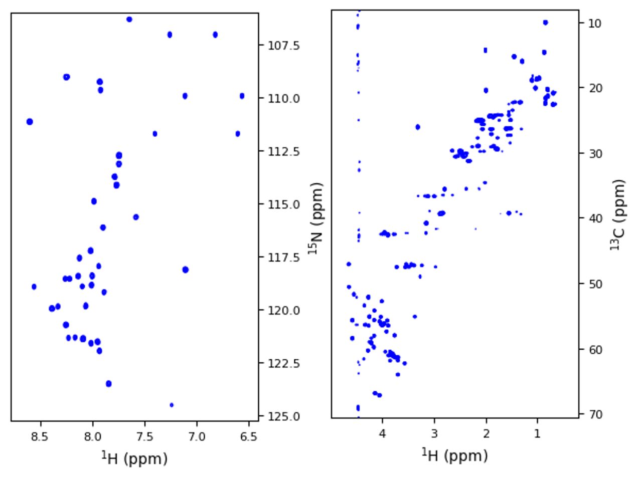 Pharmaceutical peptides and peptides from natural sources are often available in very limited amounts and may contain chemically modified or non-natural amino acids, necessitating detailed structural characterization. The ultra-sensitive CP-MNI probe enables rapid assignment of the 1H, 13C, and 15N signals, allowing for the verification of their primary structure. Additionally, it facilitates the detection and quantification of any modifications or impurities, ensuring the accuracy and reliability of peptide characterization.