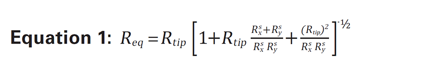 To determine the equivalent radius from measured topography data, the independent radii of curvature, (Rxs, Rys) are related to the Gaussian and mean curvature, Ks and Hs.1,4