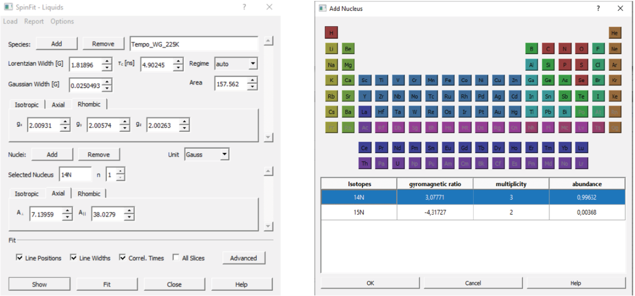 各向同性 SpinFit 是一款专为模拟和拟合非粘性溶液中自由基与过渡金属的连续波电子顺磁共振(CW-EPR)谱设计的模块。它包含一个常见谱线的自旋捕获库,即使在复杂和/或多组分信号中,也能更轻松地识别具有电子顺磁共振活性的物种。