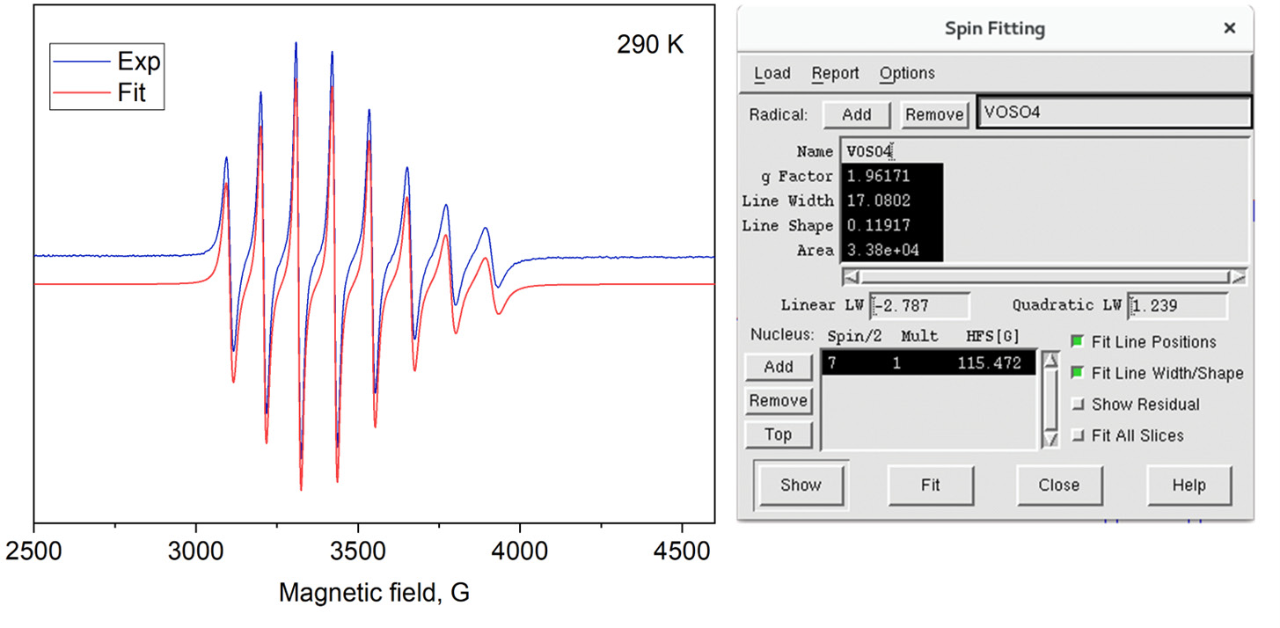 SpinFit Solids作为独立应用程序,支持Xepr、Xenon及ESRStudio软件的数据格式。用户可在Neon软件内调用该工具,用于连续波电子顺磁共振(CW-EPR)谱图的处理与分析。
