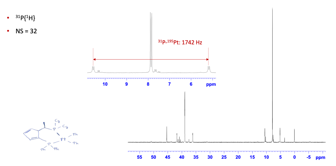 31P: Pt 复合物 (10 毫克), CD2Cl2