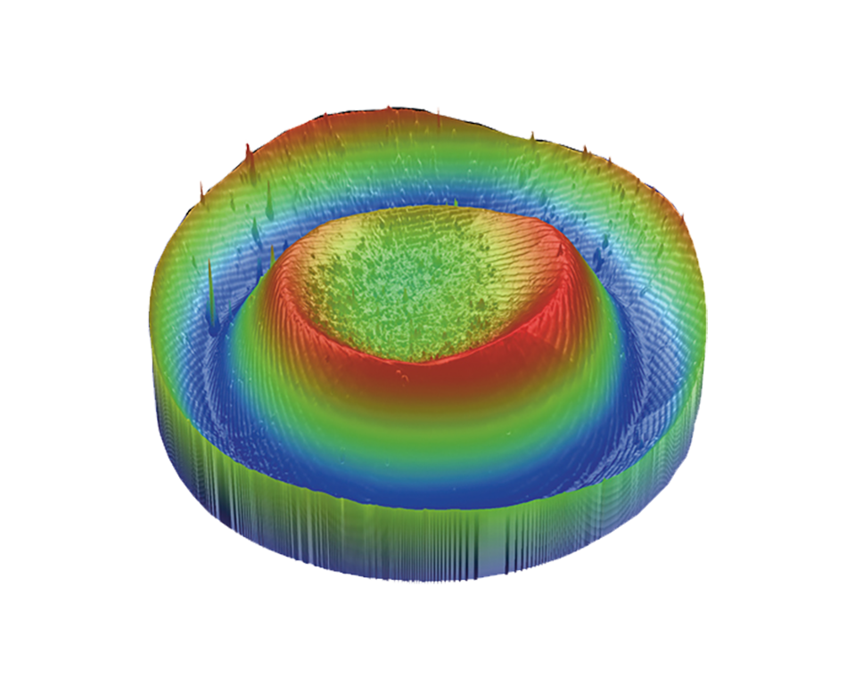 An advantage of the 3D optical microscope is that a complete 3D surface measurement provides a much more holistic representation of the lens surface than is produced via 2D stylus. This can greatly reduce the need for additional iterations and rework for IOL pin generation, or optical tooling for contact lens manufacture. There are no step height measurement limitations applicable for ophthalmic manufacture, so 3D optical microscopes can be used to measure all types of lenses. For example, on IOLs, Bruker’s 3D optical microscopes can perform fast, non-contact characterization of the transition between the hard inner core and the soft outer skirt needs to ensure it is smooth and defect free.
