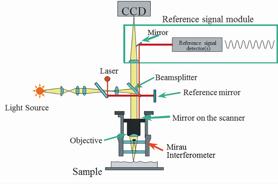 Figure 12. Basic white light interferometry with self-calibration HeNe laser.