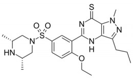 之所以选择保健饮料和能量饮料进行研究,原因是多种多样的。RegenErect是一种含有家蚕、牡蛎、枸杞和白柳树皮提取物的天然性功能增强产品,由于含有磺胺乙酰萘嘧啶(图1),一种未经批准的未经验证的西地那非类似物(图2),亦即Viagra®(伟哥)中的活性化合物,曾遭到FDA召回。